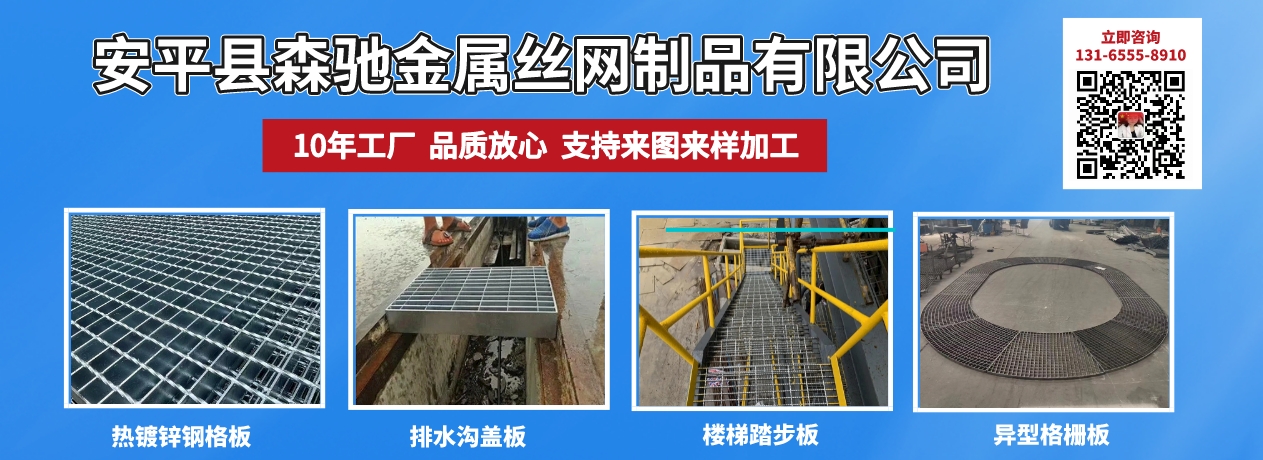 ??安平縣森馳金屬絲網制品有限公司前身為安平縣智友金屬絲網廠,位于河北省衡水市安平縣城東工業區,占地五十二畝。 我公司主要生產鋼格板、聲屏障,擁有五臺全自動壓力焊機,八臺大型沖床,四十余位工程師及技術員工,從產品研發、生產、工程施工等都力求精益求精。從而保證了產品質量過硬,深受客戶好評,歡迎廣大客戶前來參觀考察。 翱翔、超越、共贏是我公司全體員工前進的方向;品質、性能、安全、耐用性是我公司產品質量的保證;誠信務實發展、積極開拓進取是我公司經營理念;森馳公司期待與您攜手并進,共創輝煌...